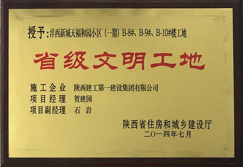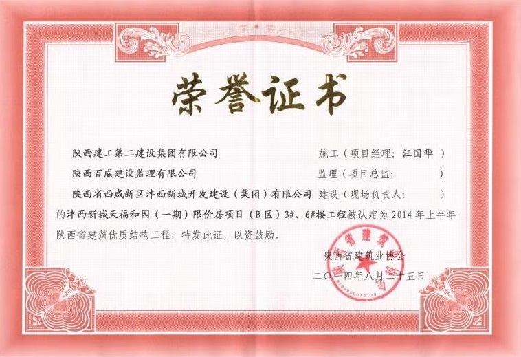 天福和園一期榮獲陜西省建筑優(yōu)質(zhì)結(jié)構(gòu)工程