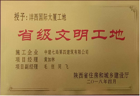 灃西國際大廈項(xiàng)目榮獲陜西省級(jí)文明工地