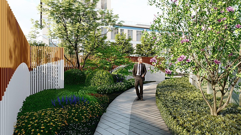 采用下沉廣場、輕氧架空庭院、休閑花園、臺地景觀、生態小廣場、景觀綠島等多種設計,建筑首層設置架空層,通過景觀美化手法,打破室內外邊界,讓自然美景與建筑完美融合,感受微風,靜聽細雨,樂享自然。