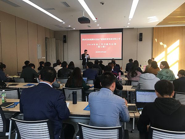 10月26日,信息產業園公司聯合園區非公黨支部組織開展2018年第七期員工學習提升計劃暨云谷大講堂活動。活動邀請西安電子科技大學MPA教育中心李雄軍博士,作“以《曾胡兵法》看園區發展”的主題講座,公司干部員工及企業代表60余人參加培訓活動。